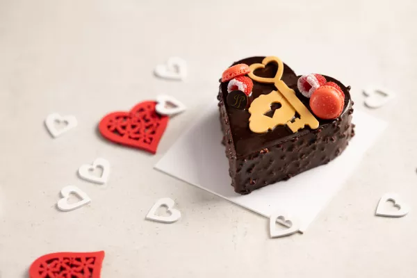 Croustillant praliné, mousse chocolat, biscuit chocolat